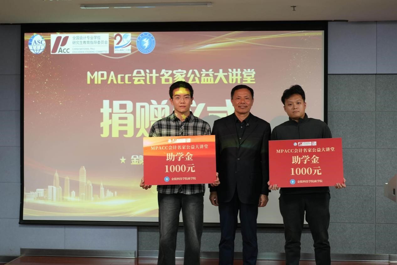 主题报告结束后,举行了“MPAcc公益大讲堂”助学金捐献仪式。杨雄胜教授将本次讲座课酬全部捐献给我校会计专硕点,用于资助两名家庭经济困难、学习优异的MPAcc学员,以助力他们将来学习顺利、健康成长。
