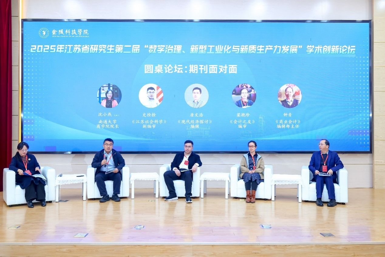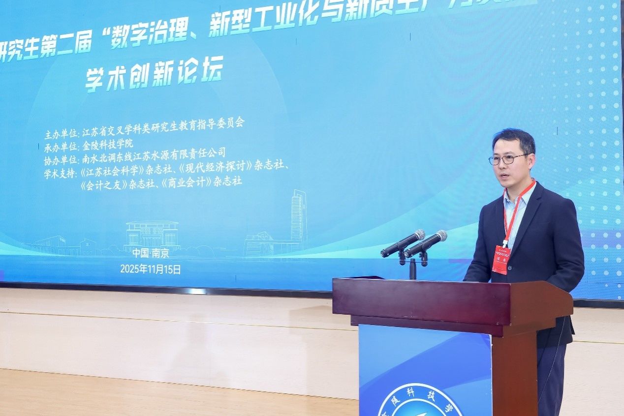 11月15日,2025年江苏省研究生第二届“数字治理、新型工业化与新质生产力发展”学术创新论坛在我校召开,论坛由江苏省交叉学科类研究生教育指导委员会主办,我校承办,南水北调东线江苏水源有限责任公司协办,《江苏社会科学》等期刊提供学术支持。论坛旨在推进数字治理、新型工业化、新质生产力领域的学术研究,提高江苏省研究生培养质量,培养创新人才。