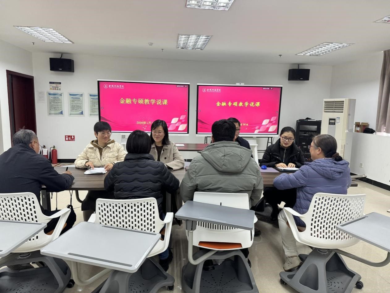 于3号科技楼407会议室举行2026年春季学期金融专硕课程说课活动。金融系主任汪浩教授、金融专硕办公室主任高蓉蓉老师、相关教学管理人员及全体金融专硕授课教师参会,活动由汪浩教授主持。