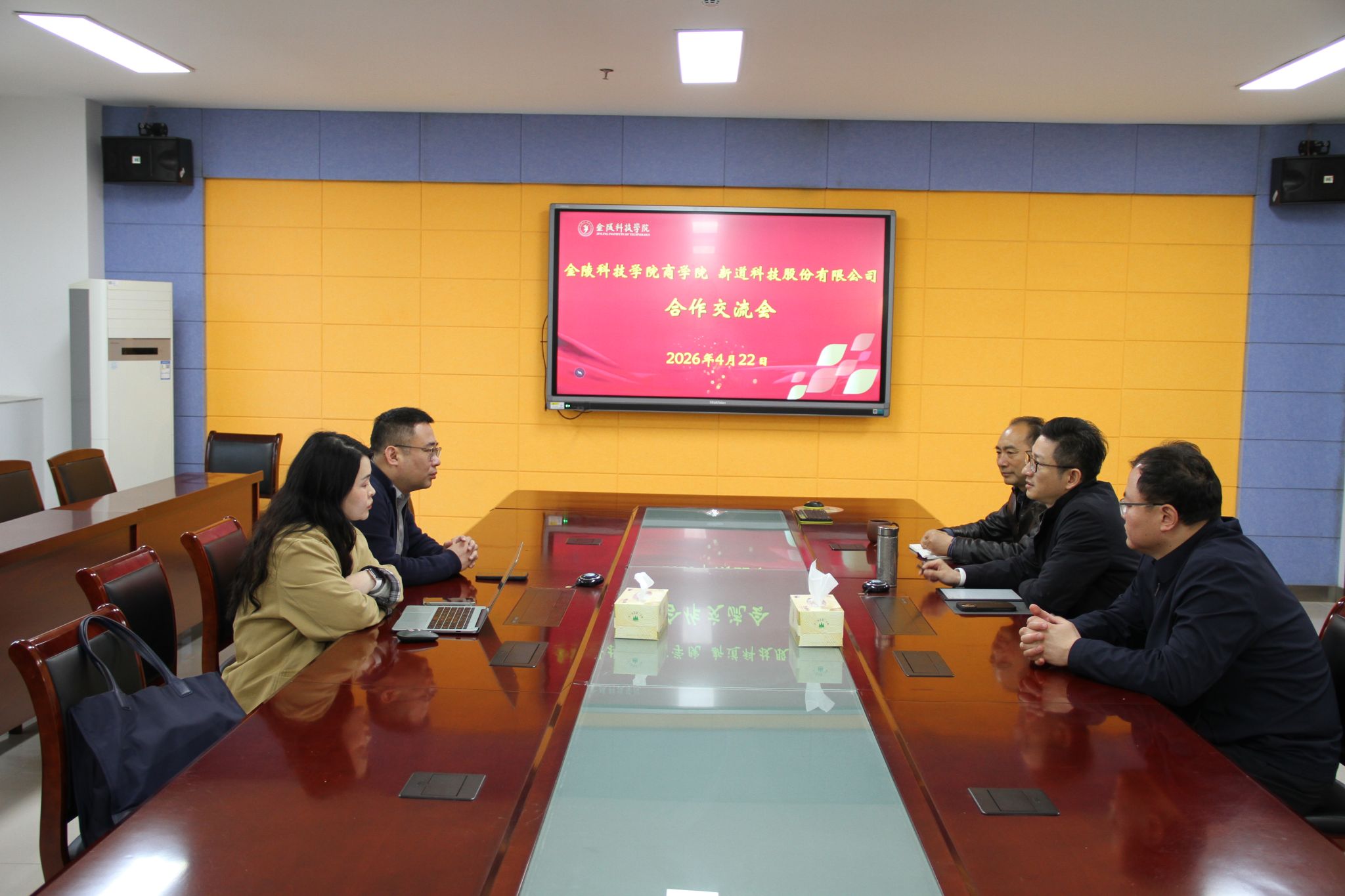 在学科建设、人才培养以及产教融合等方面的建设成效,指出双方下一步在研究生工作站、学生创新能力培养等领域进一步合作的方向。徐俊总经理回顾了双方既往良好的合作基础,介绍了新道科技在数智化人才培养与产业服务升级方面的实践经验。随后,双方围绕校企合作路径、教学模式创新、师资协同培养、学生实习与就业等议题展开了深入讨论,并就进一步推动校企协同育人达成共识。