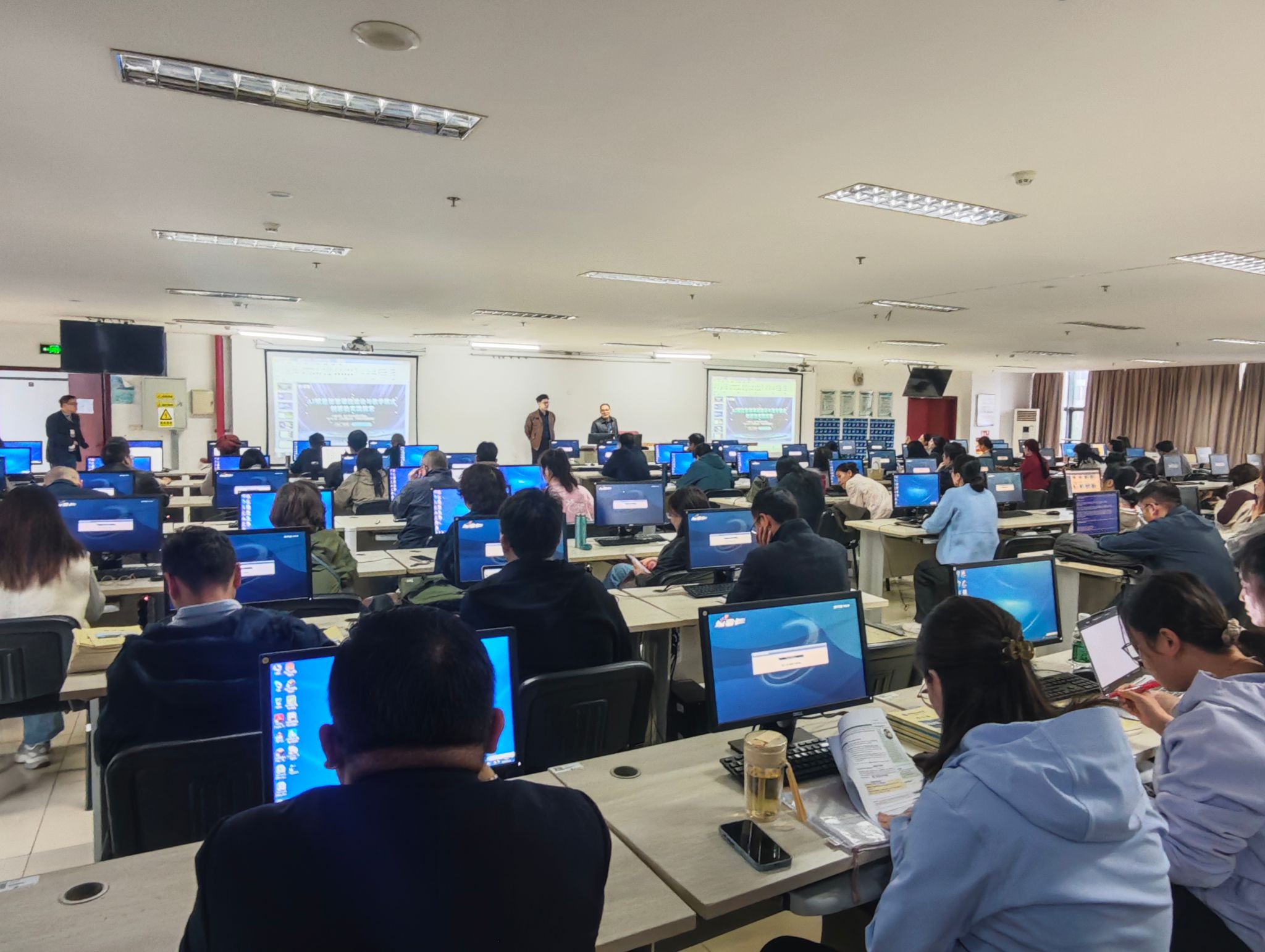 李东昇老师以“AI赋能智慧课程建设与教学模式创新的实践探索”为主题,系统讲解基于超星平台的智慧课程构建全流程,重点演示AI助教知识库搭建、AI实践智能体应用及学情分析工具操作方法,明确智慧课程建设从基础资源搭建到智能化应用要点,厘清课程资源建设路径与智能化应用要点,并现场指导参训教师完成实操演练,全程互动充分、实操性强,有效帮助教师掌握智慧课程建设与 AI 教学应用技能。参训教师参与热情高涨,互动研讨积极踊跃,针对学习中的疑问与讲师充分交流,讲师逐一细致解答,培训取得了良好成效。