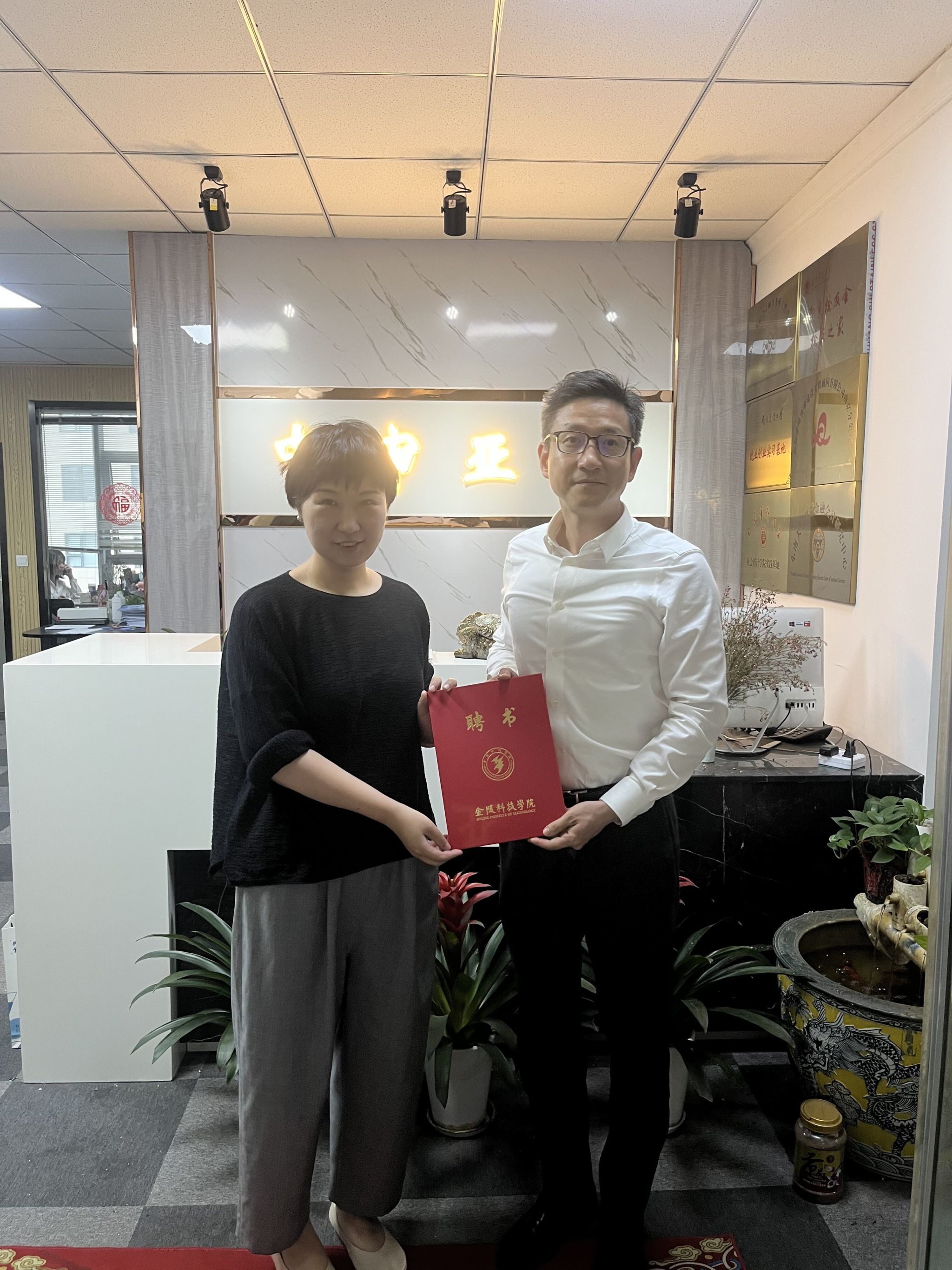 交流会中,双方举行了校外实习基地挂牌仪式,正式搭建起校企实践教学合作平台,为学生提供了更广阔的实践锻炼空间。同时,刘磊院长向董娟合伙人颁发“企业班主任”聘书,聘请其担任足球分析论坛